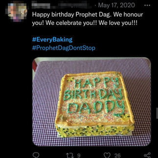 To the craziest thing, we saw mid-pandemic. Thousands of members from all over the world sat in their homes and baked a cake for this man to celebrate his birthday!!!!!!! He is a mere man!! I can already hear people justifying their actions by saying he lead me to Christ, he is my teacher etc... However, we would never do this for any other biblical figure except Jesus on Christmas. Some of you have never met him but you baked, cut and ate a cake all by yourself for his birthday! I am not mocking you, I just want you to realise how wild that is!!